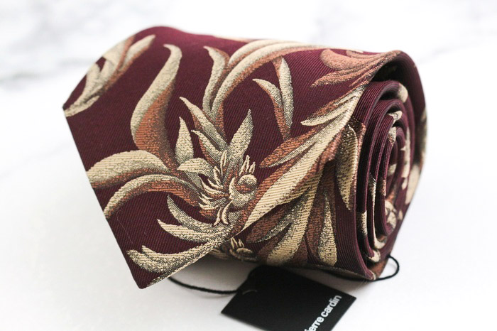 ピエールカルダン ブランド ネクタイ シルク ボタニカル柄 未使用タグ付 PO メンズ レッド Pierre Cardi...