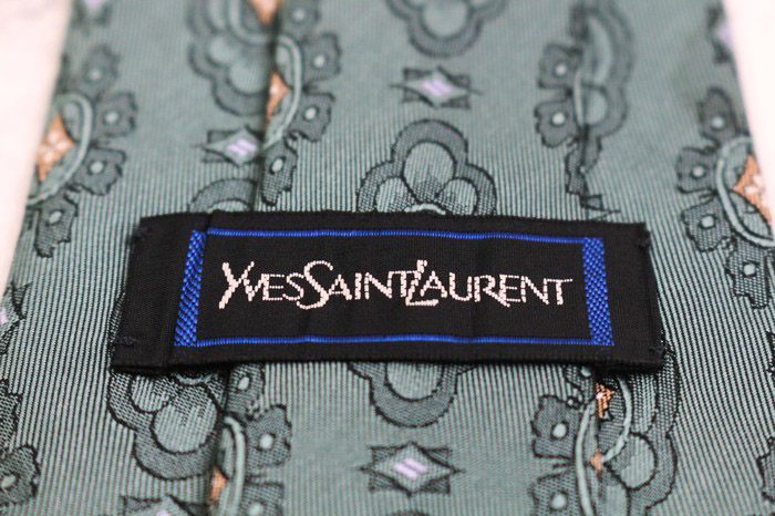 イヴ・サンローラン ブランド ネクタイ シルク 小紋柄 総柄 YSL 高級 PO メンズ カーキ YVES SAINT LAUR...