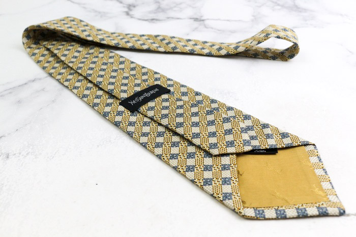 イヴ・サンローラン ブランド ネクタイ シルク 格子柄 YSL 高級 PO メンズ ホワイト YVES SAINT LAURENT 【中古】
