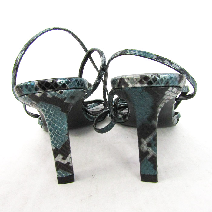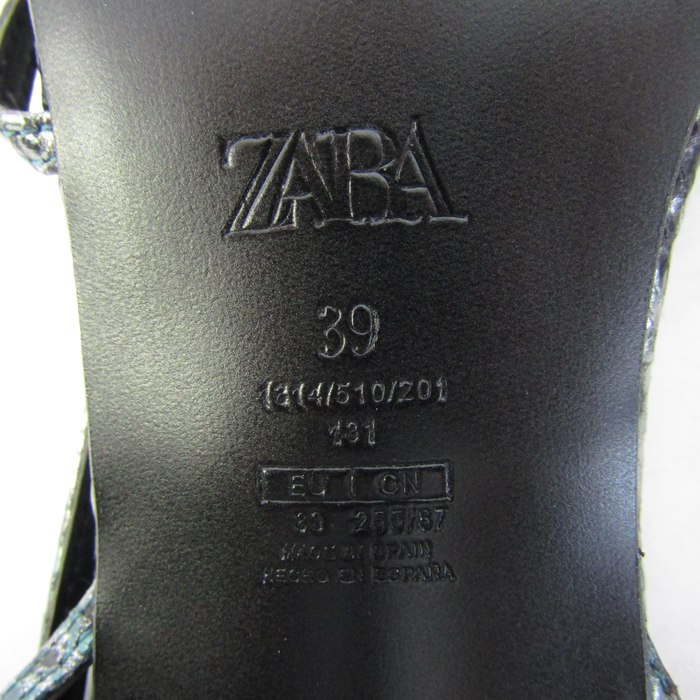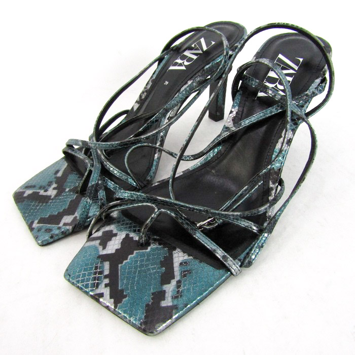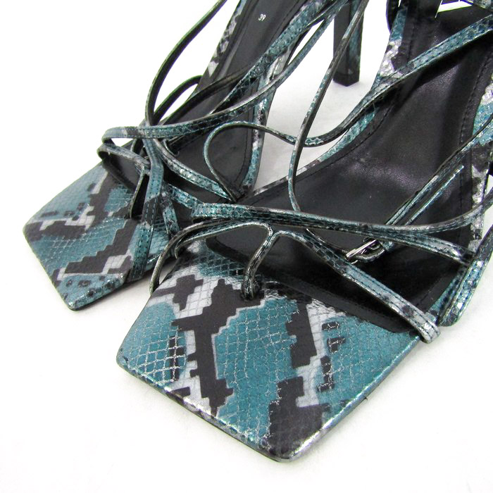 ザラ サンダル パイソン ハイヒール ストラップ スクエアトゥ 靴 レディース 39サイズ ブラック系 ZARA ...
