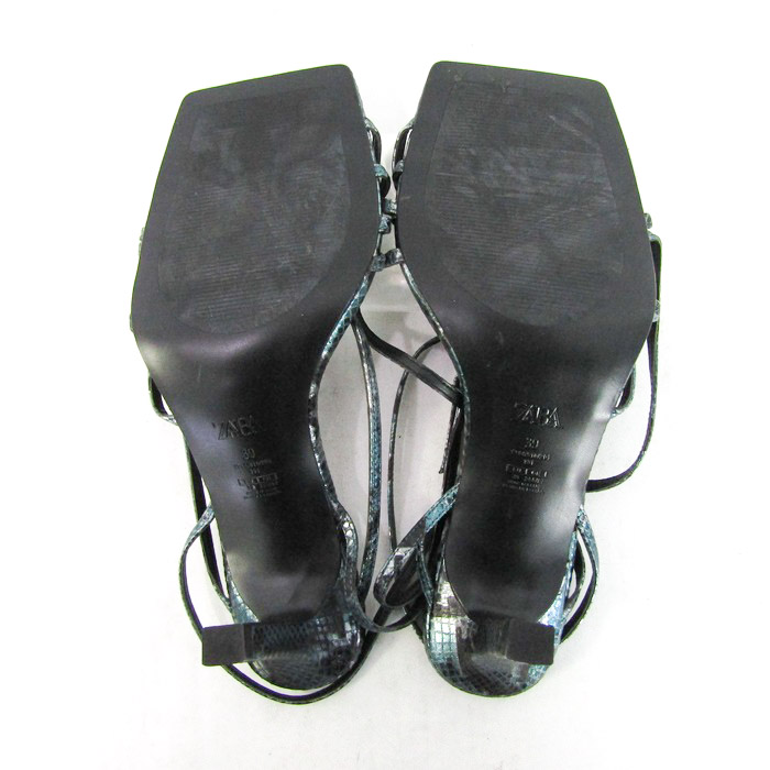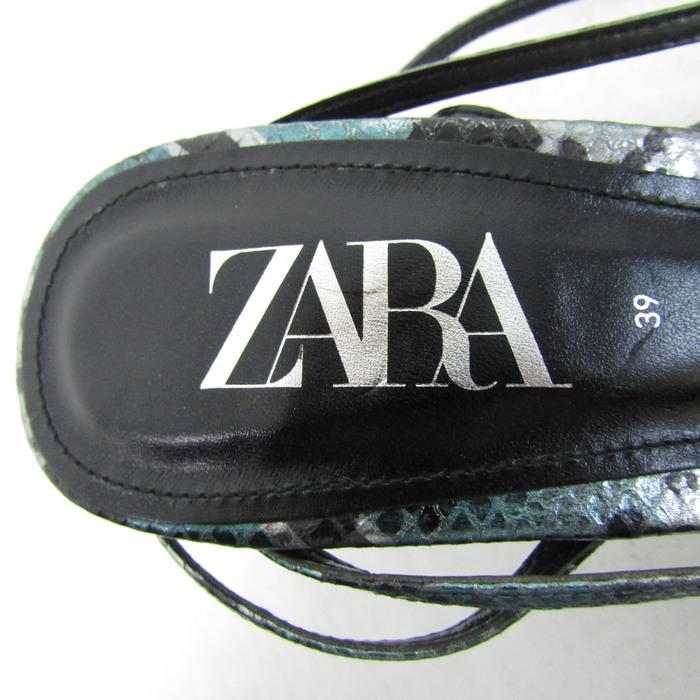ザラ サンダル パイソン ハイヒール ストラップ スクエアトゥ 靴 レディース 39サイズ ブラック系 ZARA 【中古】