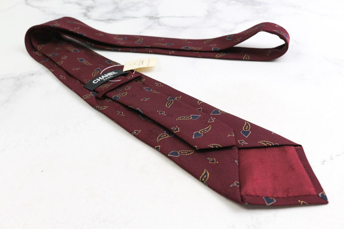 シャネル ブランド ネクタイ ペイズリー ダイヤ柄 シルク イタリア製 未使用タグ付 PO メンズ ワインレッド CHANEL 【中古】