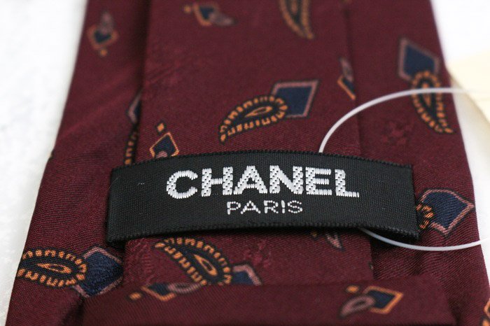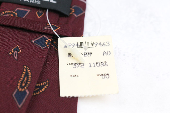 シャネル ブランド ネクタイ ペイズリー ダイヤ柄 シルク イタリア製 未使用タグ付 PO メンズ ワインレ...