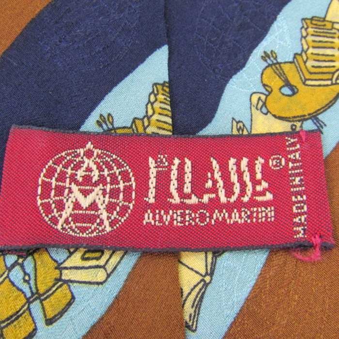 プリマクラッセ ブランド ネクタイ シルク ストライプ柄 総柄 ハンドメイド ワイドタイ PO メンズ ネイビー PRIMA CLASSE 【中古】