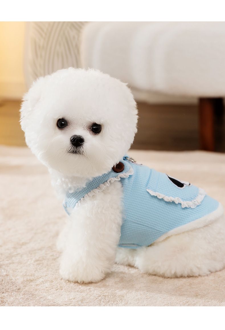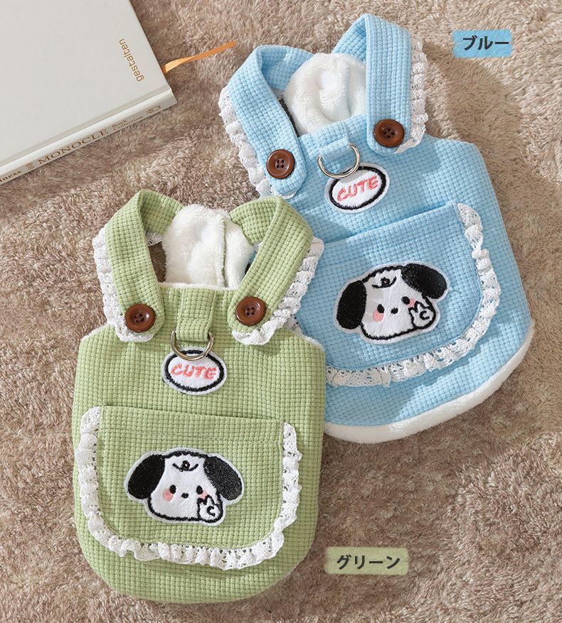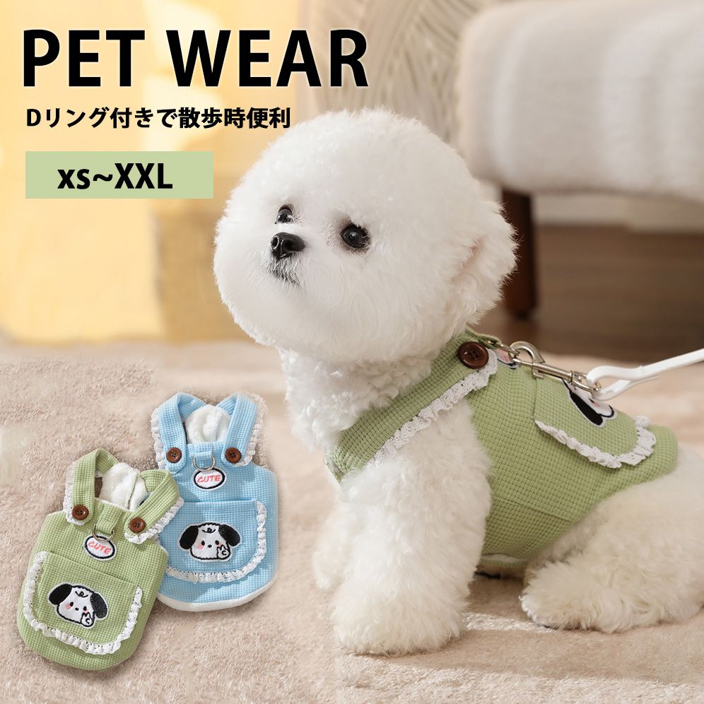 ■コメント・通気性や伸縮性に優れた柔らかな風合いのワッフル生地。・Dリング付きで散歩時便利なペットウェアです。・前スナップボタンで着脱が簡単です。・肩回りや背中のポケットにフリルが付いたデザインで可愛いらしいです。■サイズ画像に記載※目安を表示しております。ご参照ください。画像に記載■カラー画像に記載■素材ポリエステル