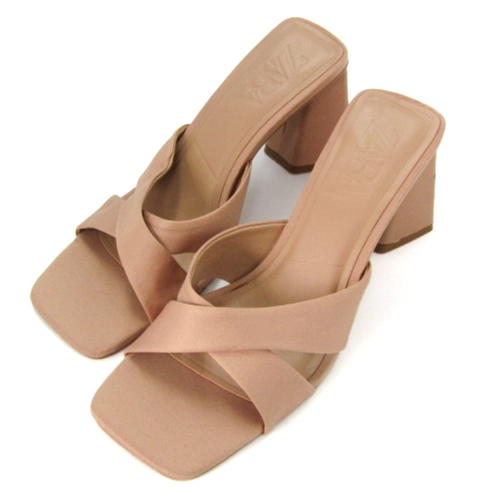 ザラ クロス サンダル チャンキーヒール 靴 レディース 36サイズ ベージュ系 ZARA 【中古】