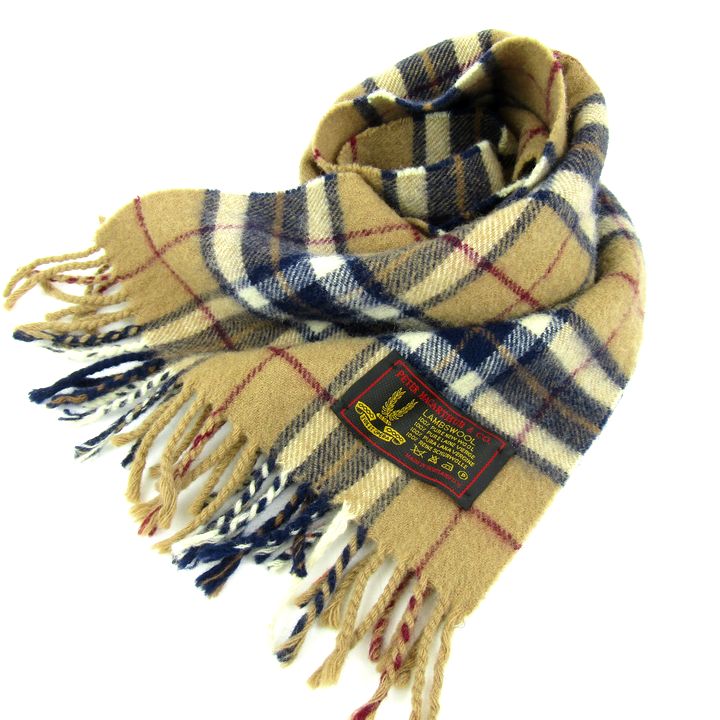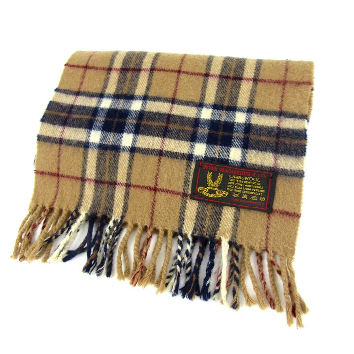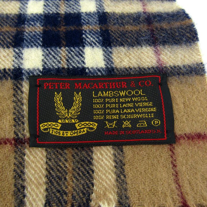 ピーター・マッカーサー マフラー ウール スコットランド製 チェック柄 ブランド レディース メンズ ブラウン PETER MACARTHUR 【中古】