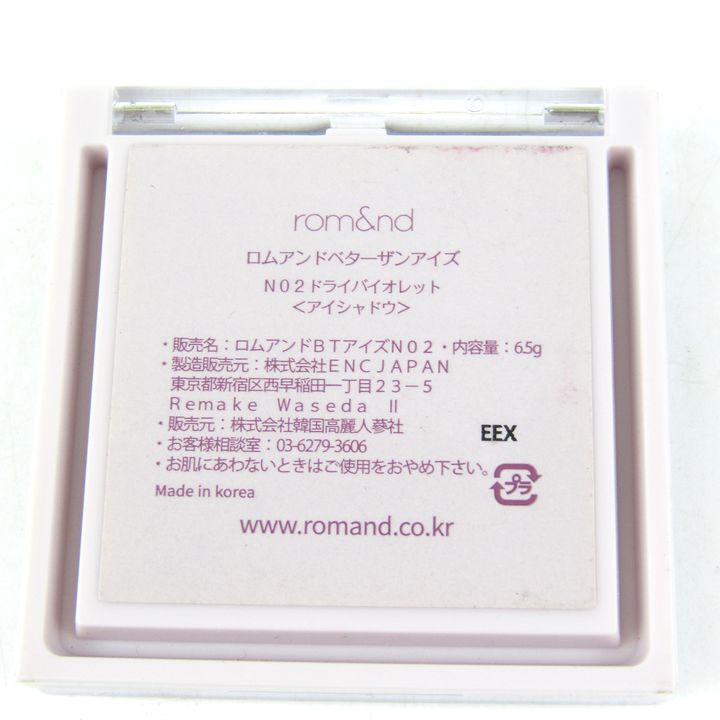 ロムアンド アイシャドウ ベターザンアイズ N02ドライバイオレット 若干使用 コスメ レディース 6.5gサイズ rom&nd 【中古】