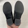 状態はかなり良い美品なのですが、しばらく倉庫で寝かせてあった商品なので微妙に加水分解を起こしているようで表面がペタペタします。革クリーナーや無水エタノールで拭き、風通しの良い場所に置いておくとベタベタが取れるようです。詳細はネットで【本革 べたつき 取り方】で検索すると出てきます。試しに一足、家にある普通の黒革靴用の靴クリームを付けて24時間下駄箱の外に置いておいただけでも、だいぶペタペタ感はなくなりました。