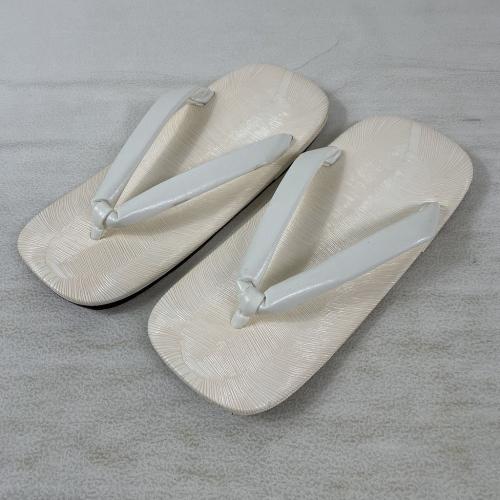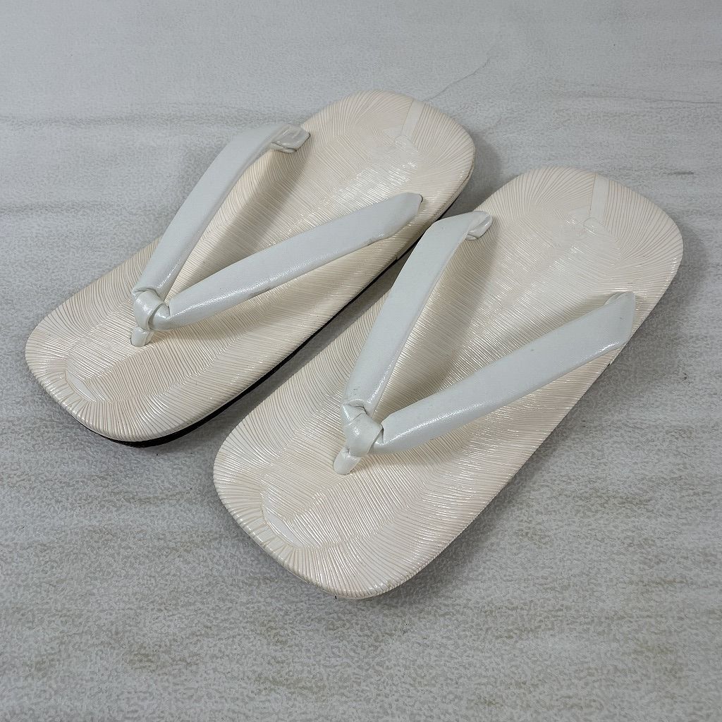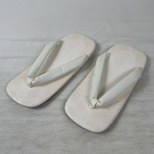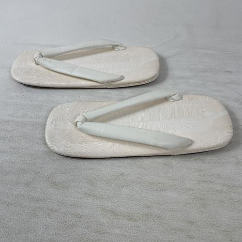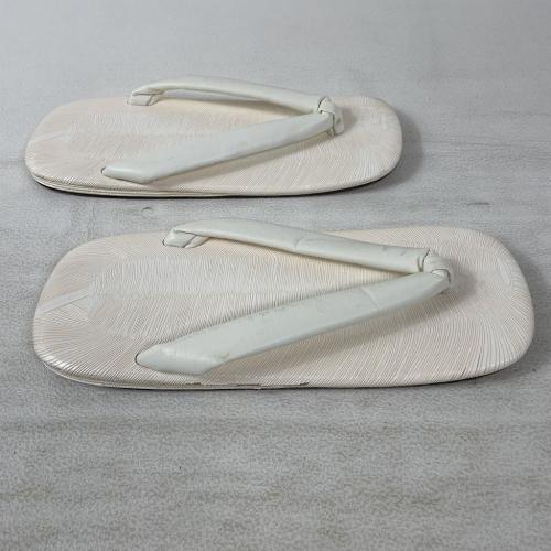 こちらは和装履物(雪駄)、【晴れ着の●昌】のレンタル落ちです。白塗りに白い鼻緒でカッコいいです(^^)