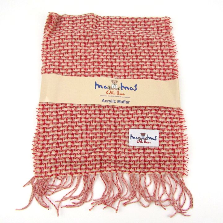 ママス カルベアー マフラー 未使用 ロゴタグ チェック柄 ブランド レディース レッド mamas CAL bear 【中古】