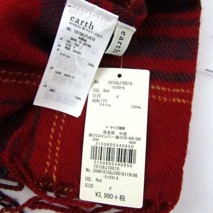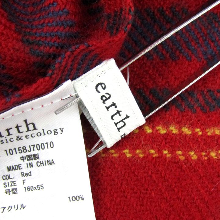 アースミュージックアンドエコロジー チェック ストール 未使用 マフラー ブランド レディース レッド earth music&ecology 【中古】