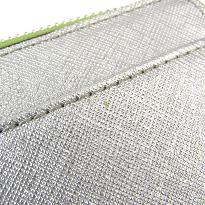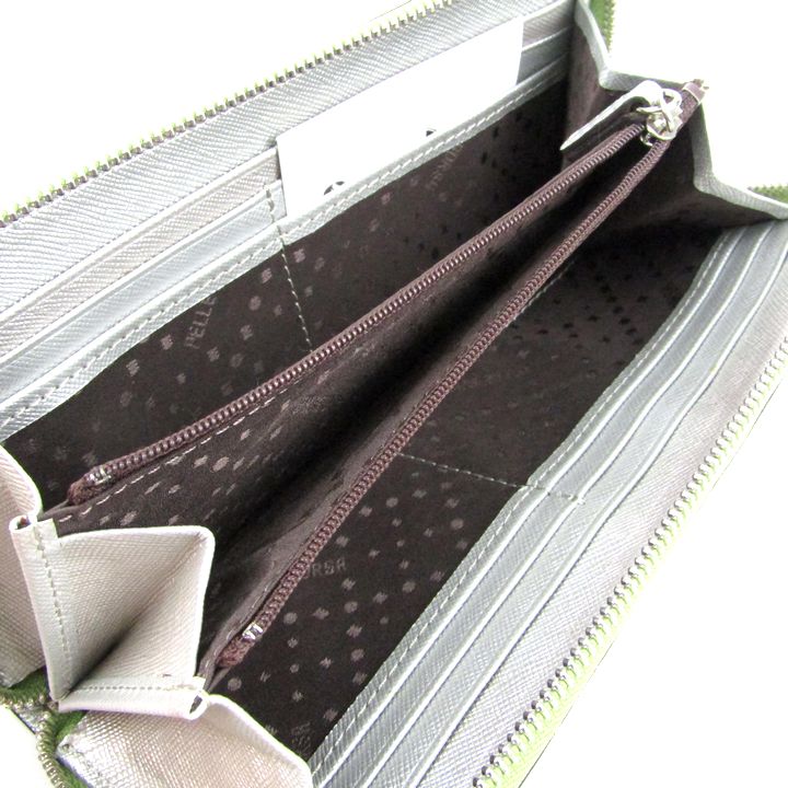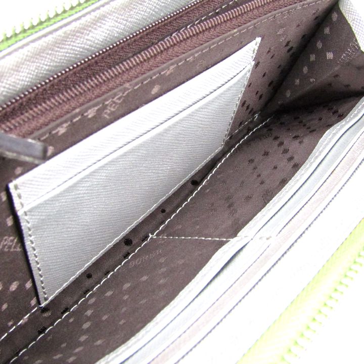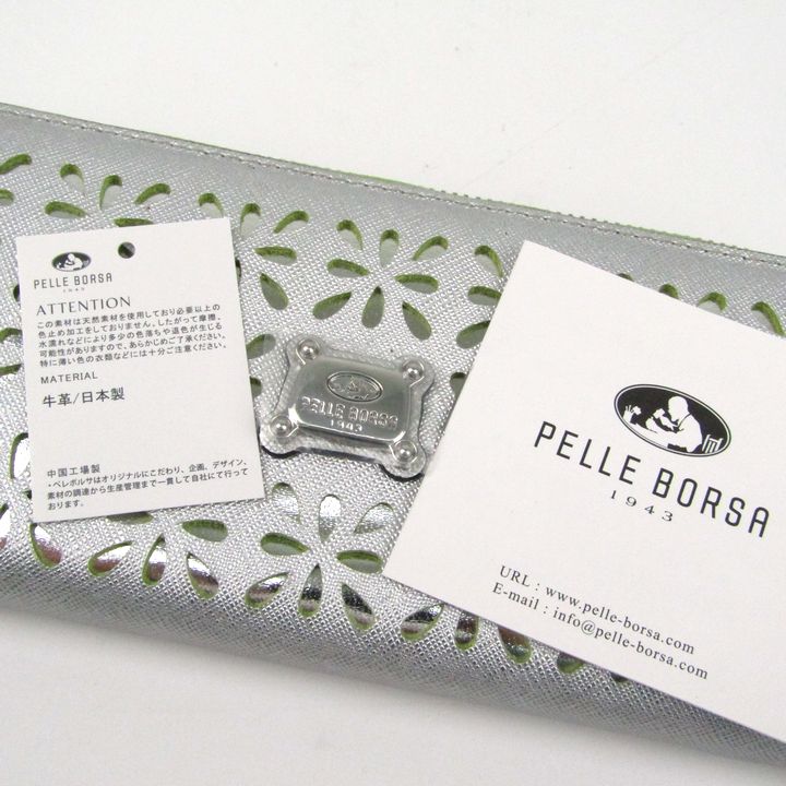 ペレボルサ 長財布 本革 パンチングレザー 小銭入れあり 日本製 ブランド ウォレット レディース シルバー PELLE BORSA 【中古】