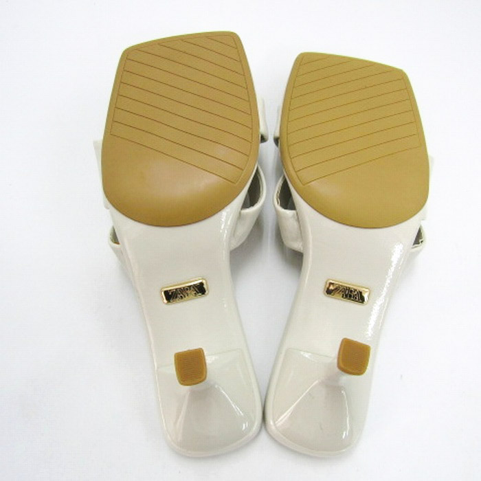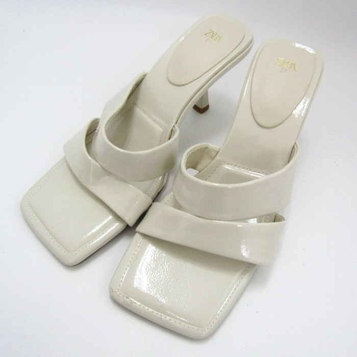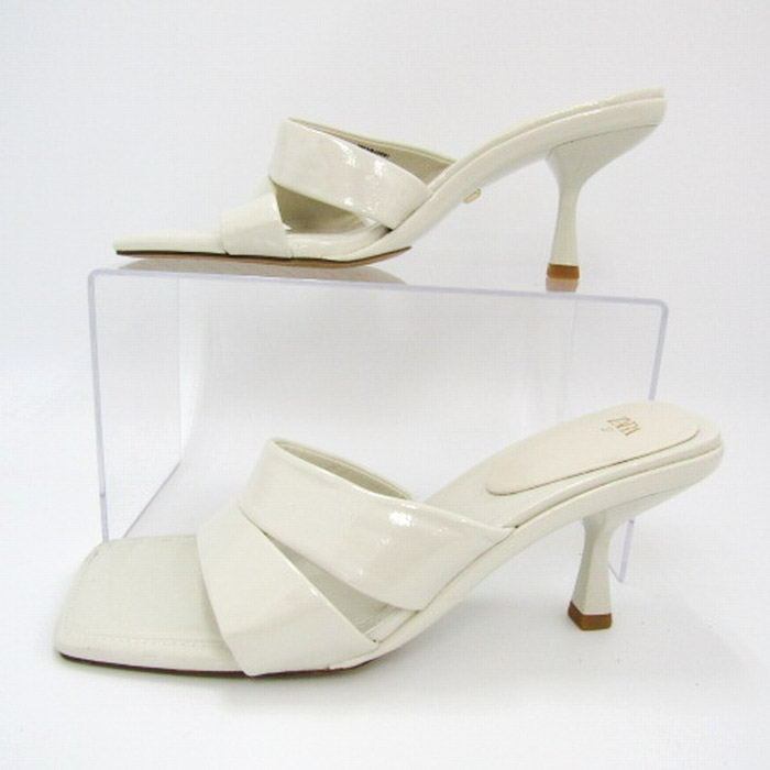 ザラ サンダル エナメル ミュール ピンヒール 靴 レディース 37サイズ オフホワイト ZARA 【中古】