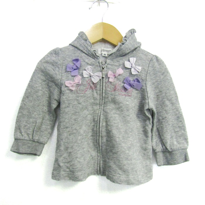 ジルスチュアート パーカー トップス ジップアップ スウェット リボン ベビー 女の子用 80サイズ グレー JILLSTUART 【中古】