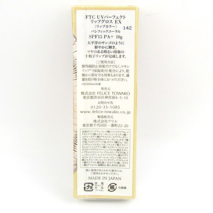 エフティーシー UVパーフェクト リップグロス パシフィックコーラル 未使用 外装ダメージ有 レディース 10gサイズ FTC 【中古】