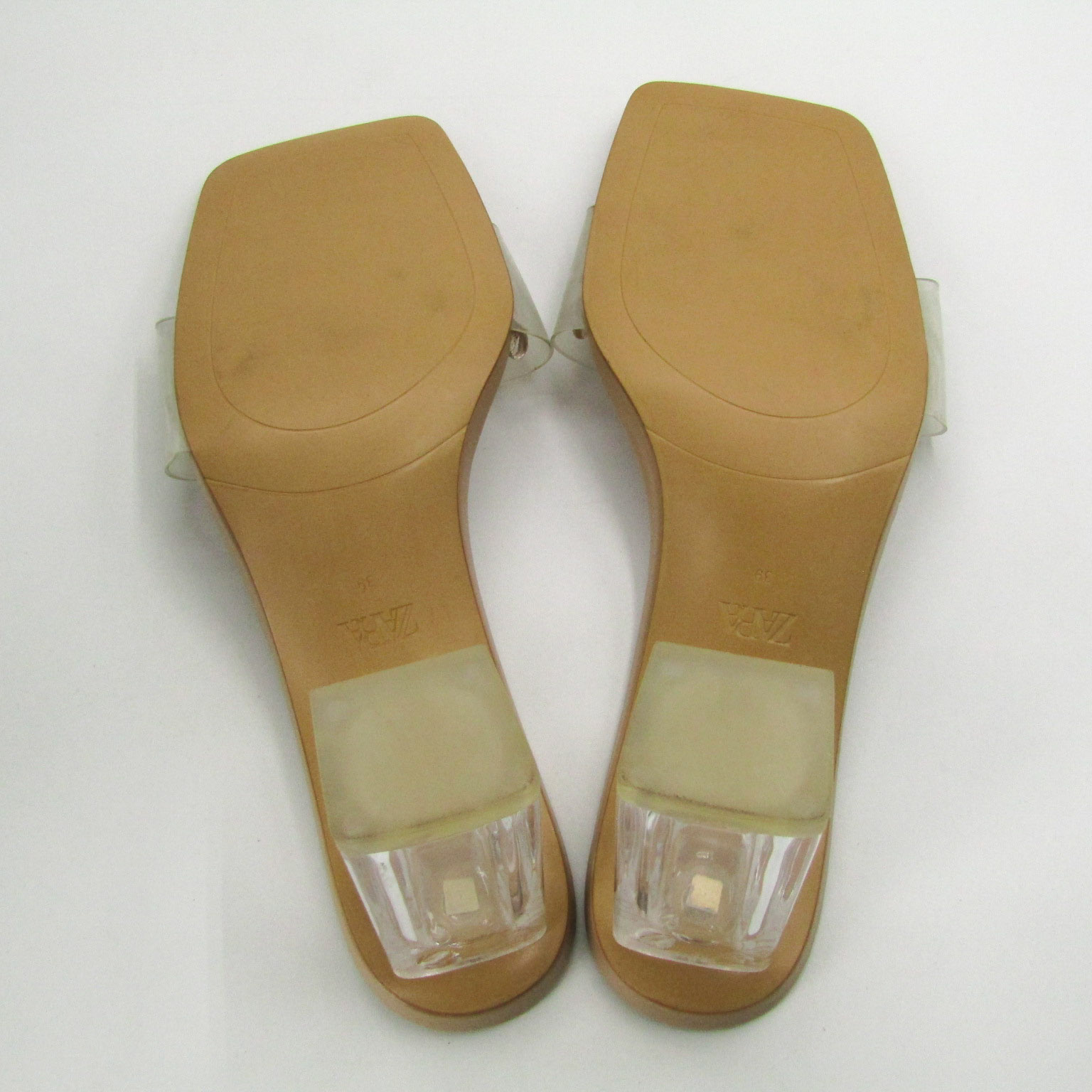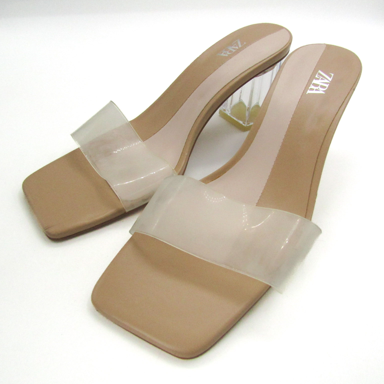ザラ ミュール サンダル クリアヒール チャンキーヒール 靴 レディース 38サイズ ベージュ系×透明 ZARA 【中古】