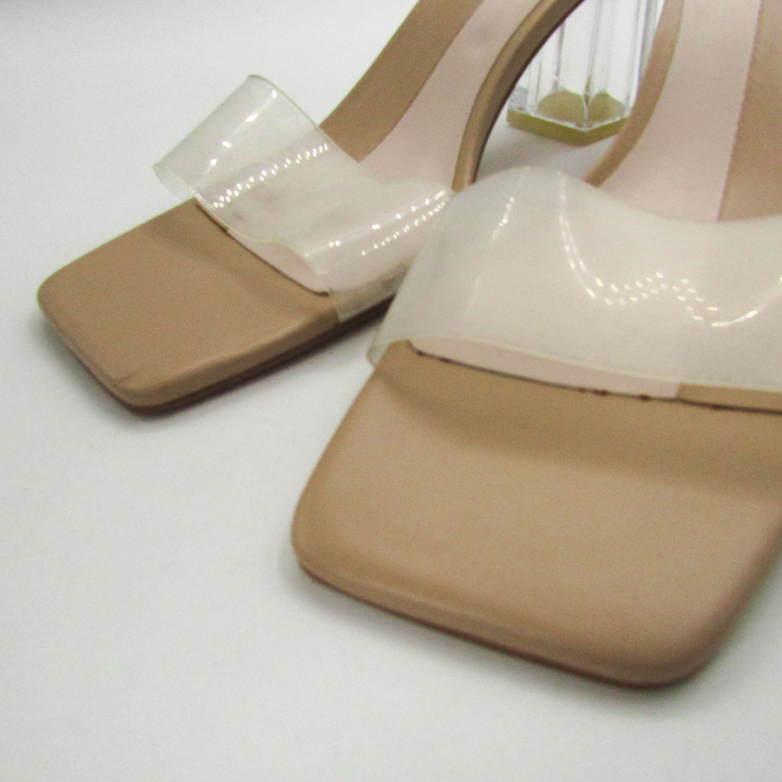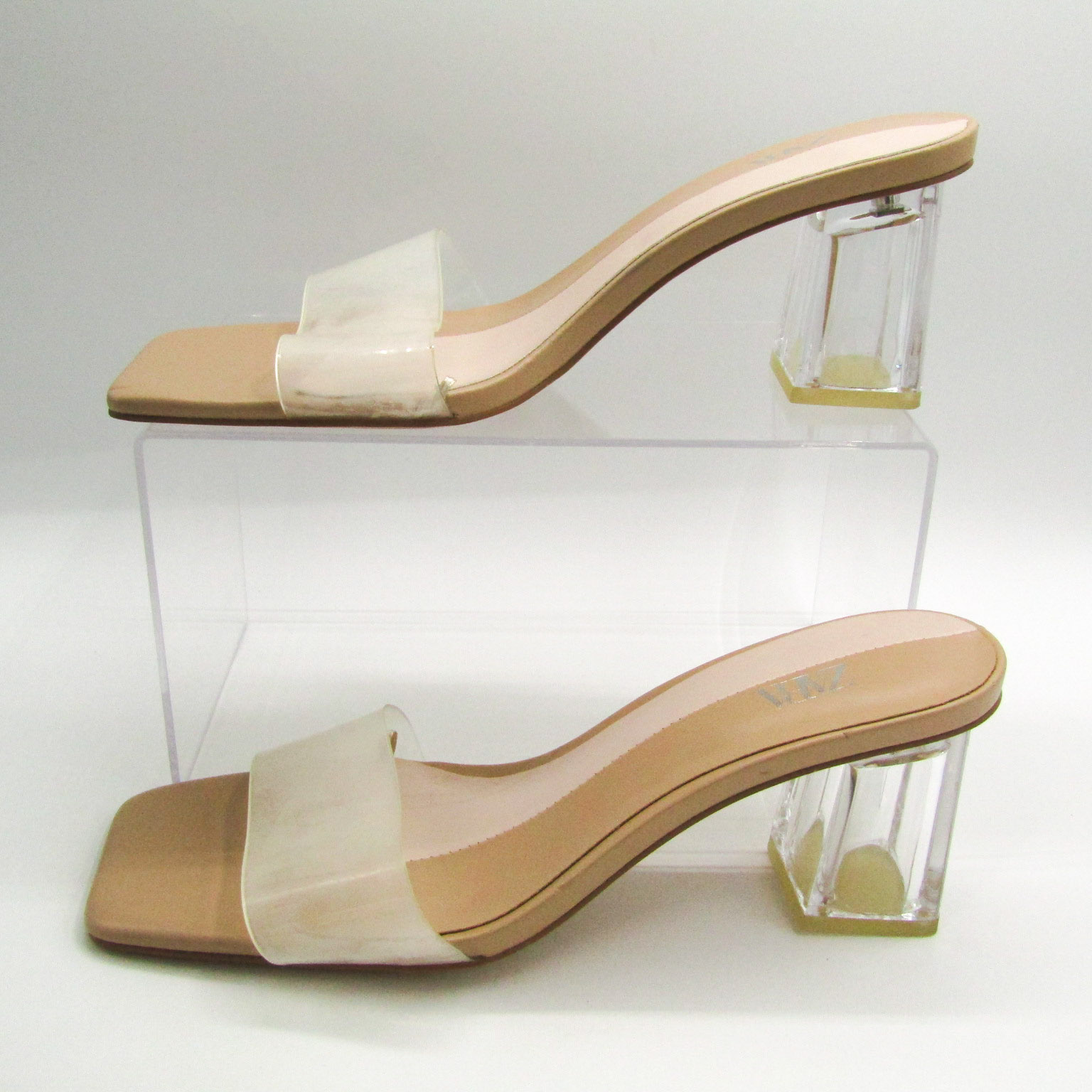 ザラ ミュール サンダル クリアヒール チャンキーヒール 靴 レディース 38サイズ ベージュ系×透明 ZARA ...