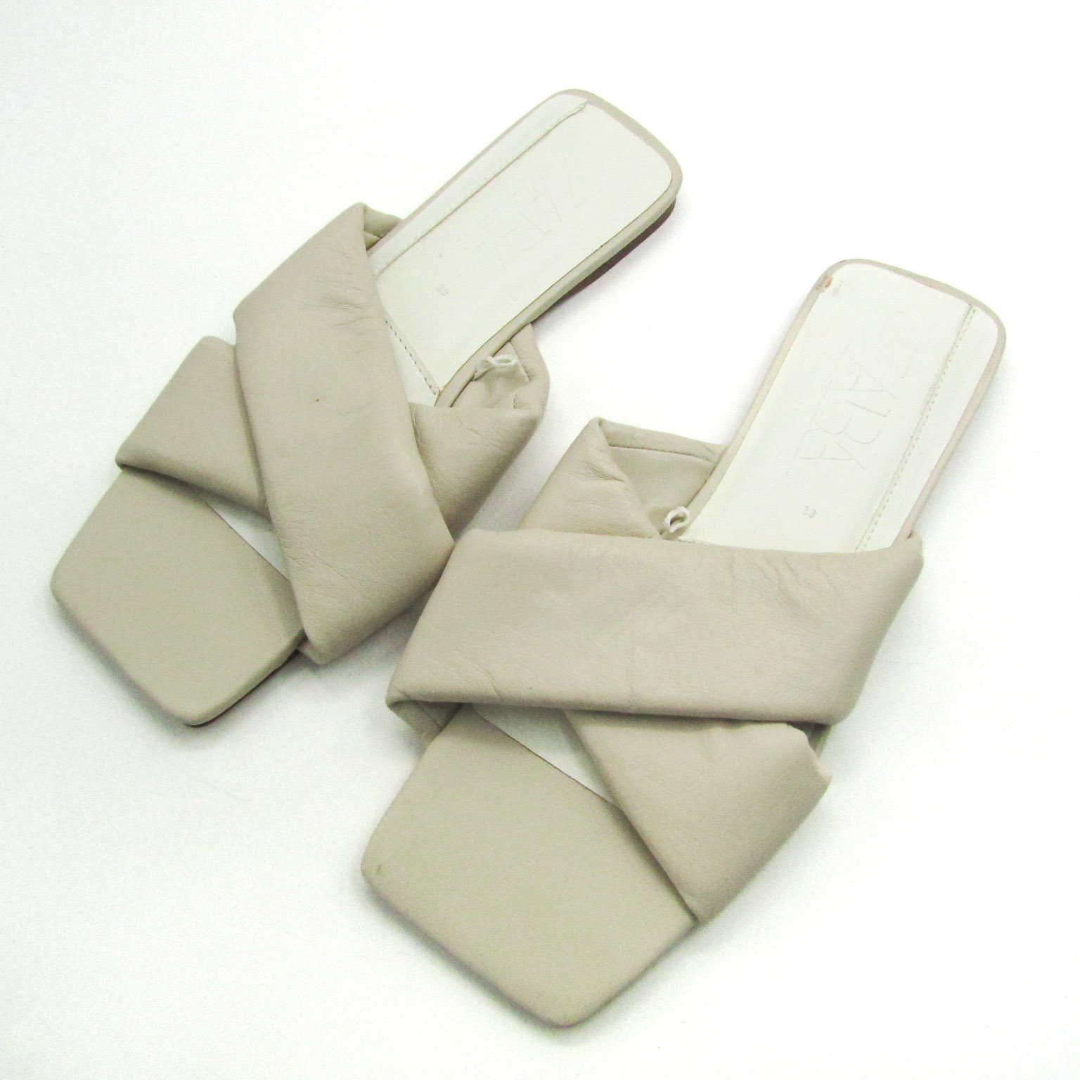 ザラ ミュール キルティング クロスベルト フラットサンダル 靴 レディース 39サイズ ベージュ ZARA 【中古】