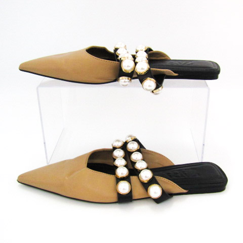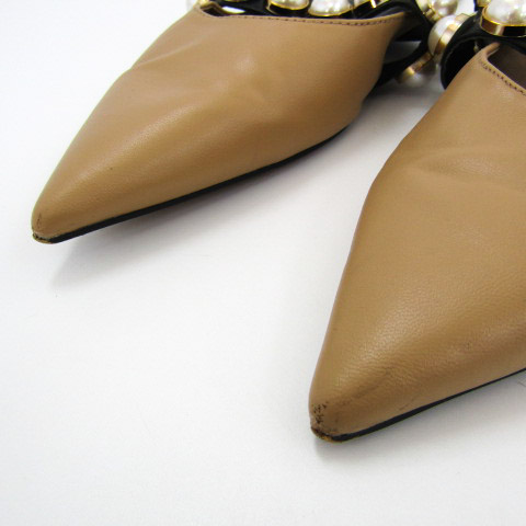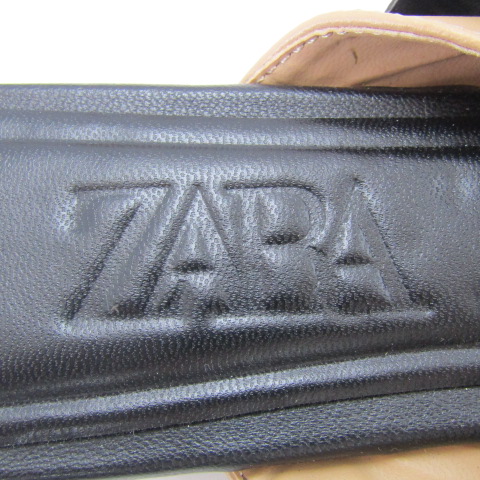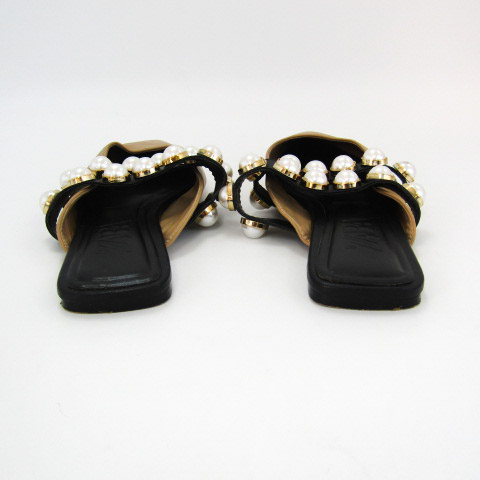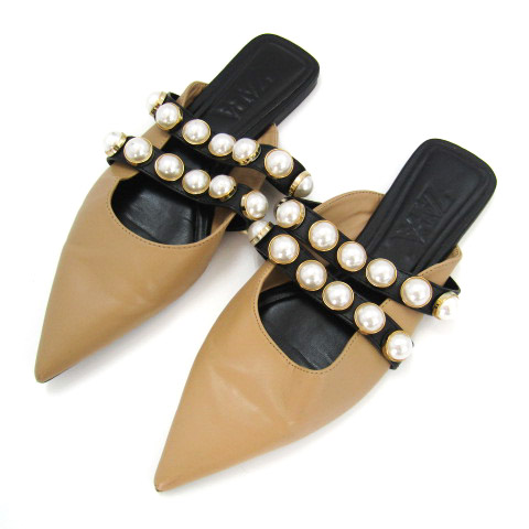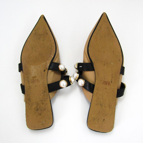 ザラ ミュール サンダル ポインテッドトゥ パール 靴 レディース 36サイズ ベージュ×ブラック ZARA 【中古】