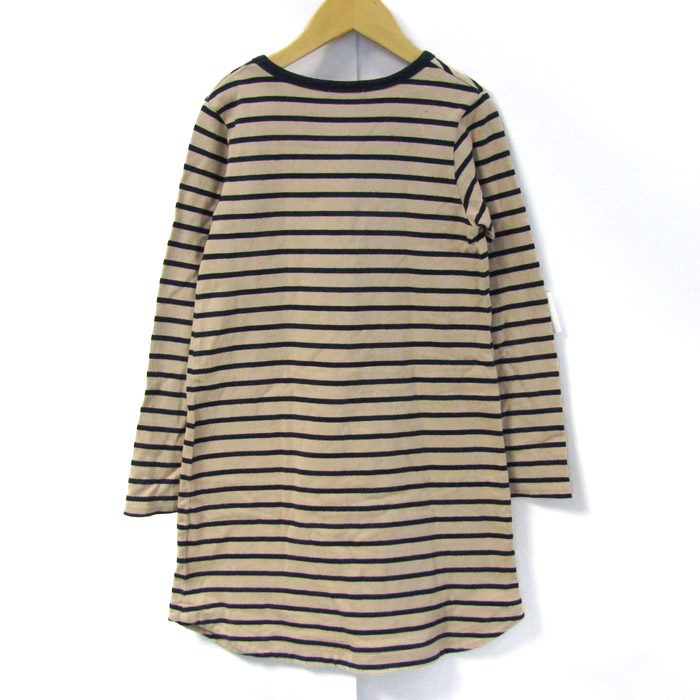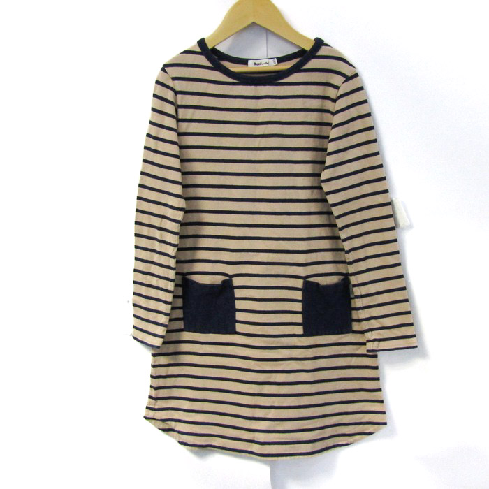 ノイユエームべべ ワンピース トップス 長袖 ボーダー柄 キッズ 女の子用 140サイズ ベージュ×紺 Noeil ...