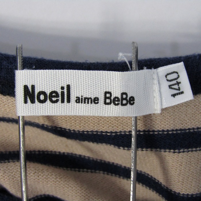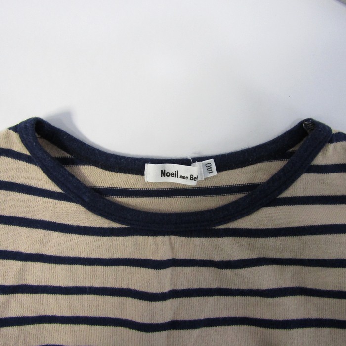 ノイユエームべべ ワンピース トップス 長袖 ボーダー柄 キッズ 女の子用 140サイズ ベージュ×紺 Noeil aime BeBe 【中古】