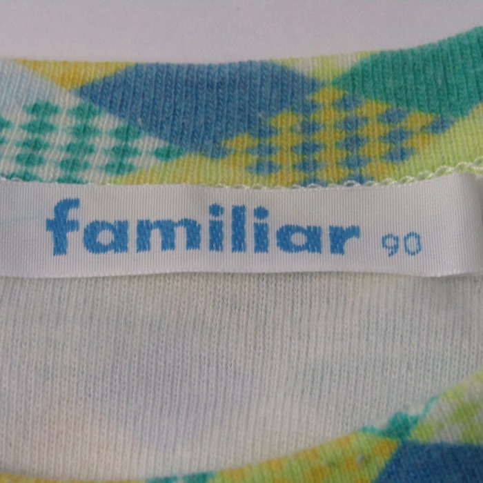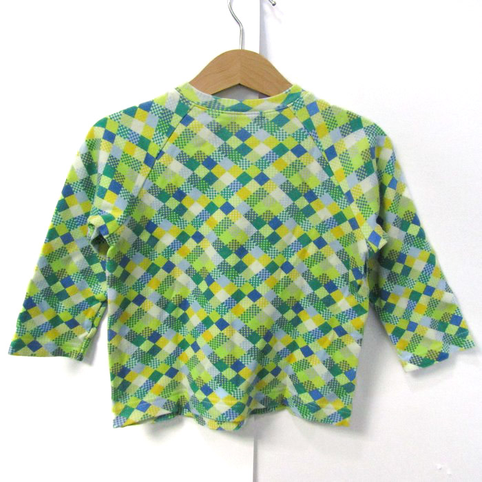 ファミリア 長袖Tシャツ トップス チェック柄 スナップ 日本製 ベビー 男の子用 90サイズ 青×緑 Familiar 【中古】