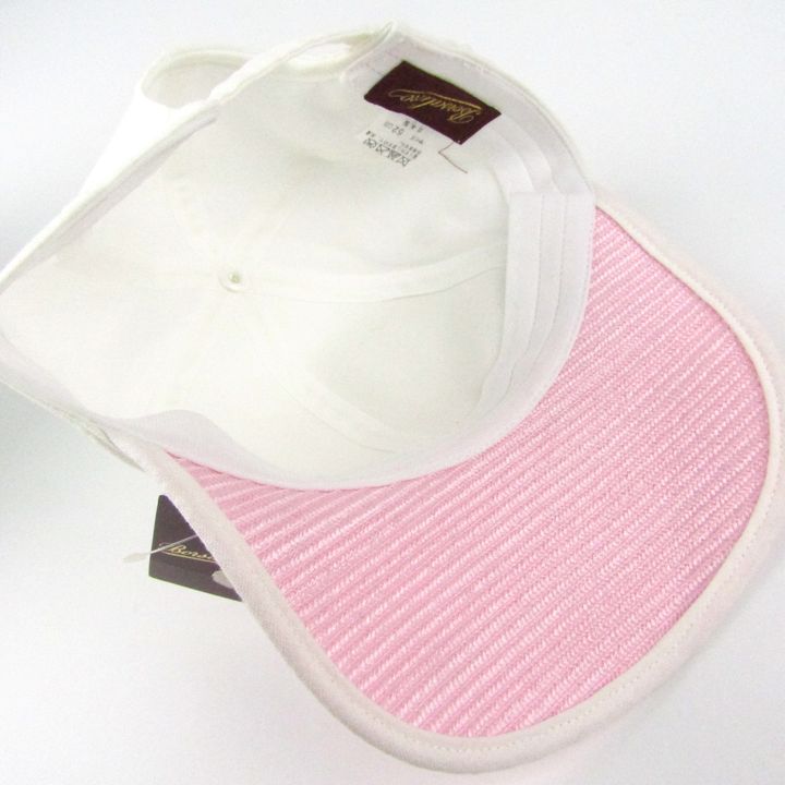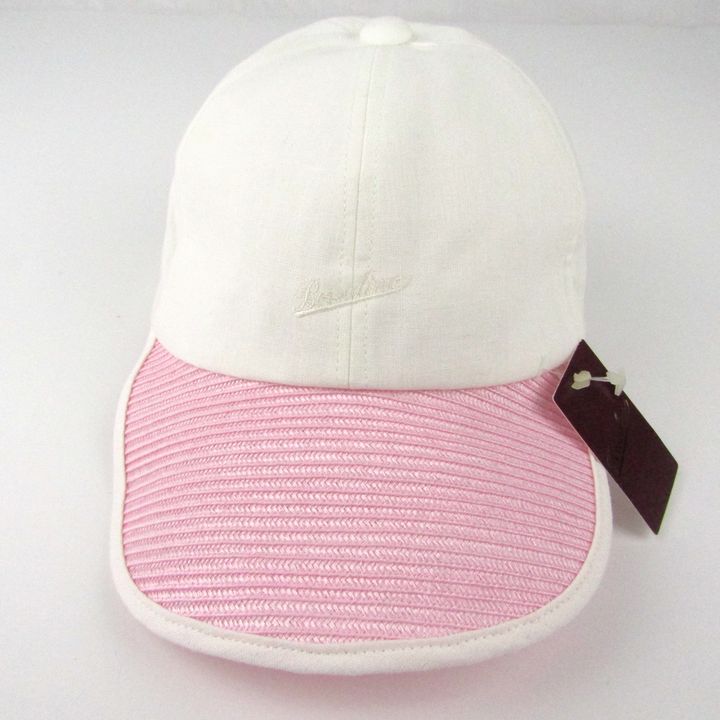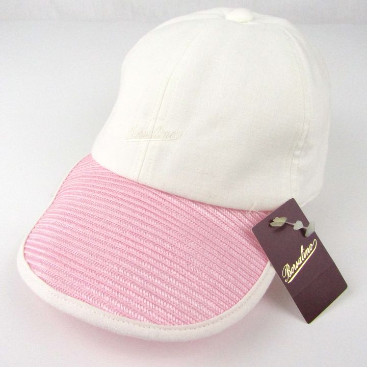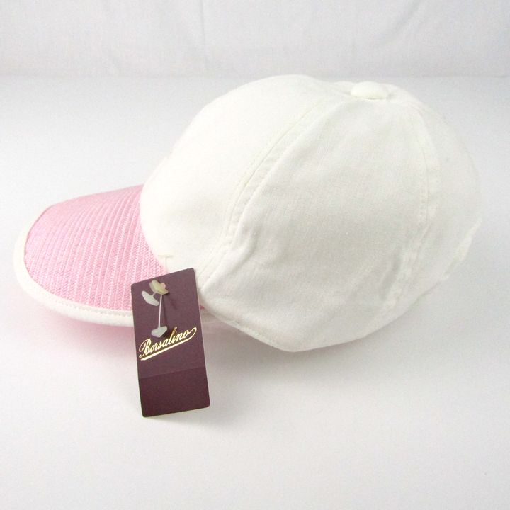 ボルサリーノ キャップ 未使用 日本製 リネン/コットン 帽子 ブランド レディース 52cmサイズ ホワイト ピンク Borsalino 【中古】