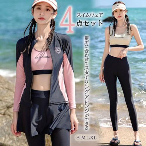 ■コメント・スポーツジム、海、プール、サーフィン、競泳など色んな場面で活躍できる水着4点セット。・弾力性、伸縮性抜群でノンストレスな肌心地。・露出が少なく日焼け対策もバッチリです。・通気性に優れ、軽量でやわらかく動きやすい。・場面に合わせてスタイリングアレンジができます。・3D立体設計で体の美しさを際立たせ、筋肉や体の優雅なラインをより魅力的に表現します。■サイズ参照S 70ABC~80A バストアンダー 約62-70cmM 75B~80ABC バストアンダー 約66-72cmL 80BC~85AB バストアンダー 約70-76cmXL 80AB~85AB バストアンダー 約70-76cm※平置き採寸の為、2~3cm誤差が生じる場合がございます。ご了承くださいませ。 ■カラー画像の通り■伸縮性あり■裏地なし■生地の厚さ普通■透け感なし■素材表地:ポリエステル95%、 ポリウレタン5%裏地:ポリエステル繊維100%