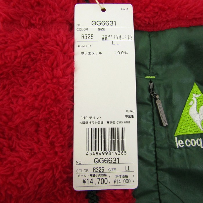 ルコックスポルティフ ベスト ジャケット アウター ボアフリース ゴルフウエア 未使用 メンズ LLサイズ ...