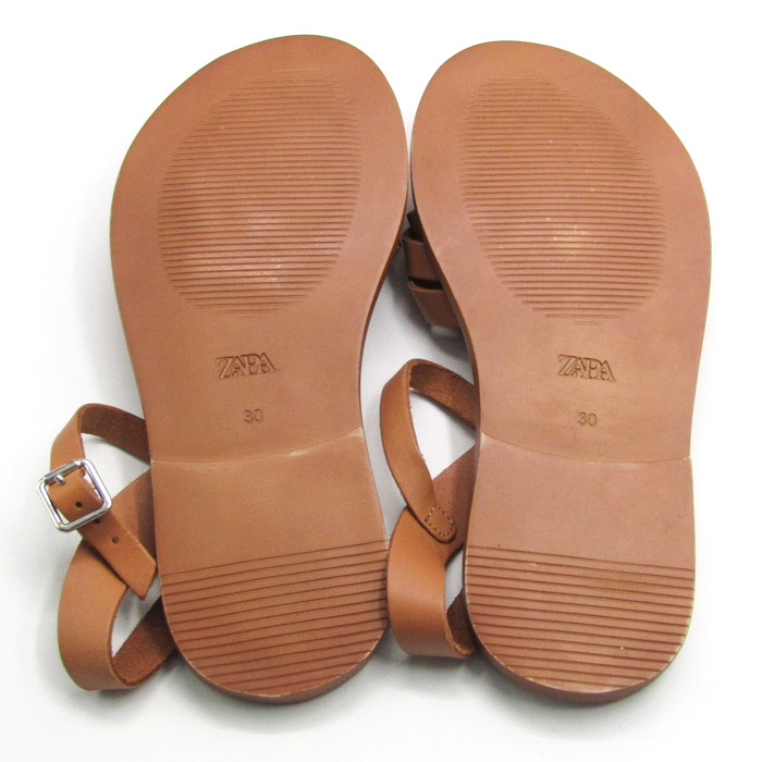 ザラ サンダル 編み込み フラットシューズ 靴 キッズ 女の子用 30サイズ ブラウン ZARA 【中古】