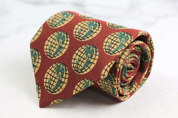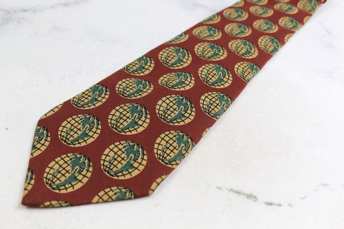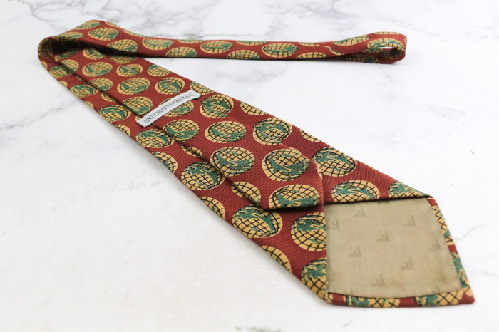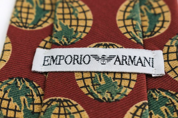 エンポリオ・アルマーニ ブランド ネクタイ シルク 地球儀 ウール 総柄 PO メンズ レッド EMPORIO ARMAN...
