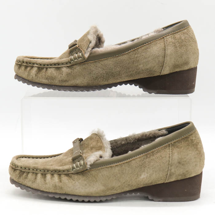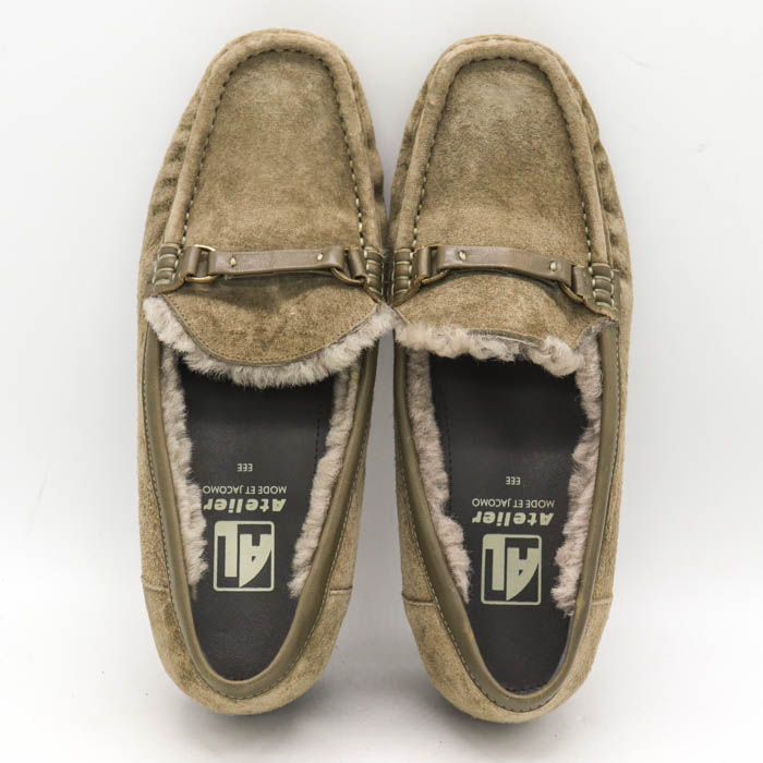 アトリエ モカシン 幅広 3E モードエジャコモ ブランド シューズ 靴 レディース 23.5サイズ カーキ Atelier 【中古】