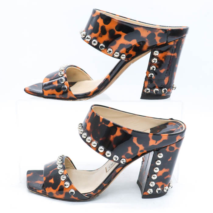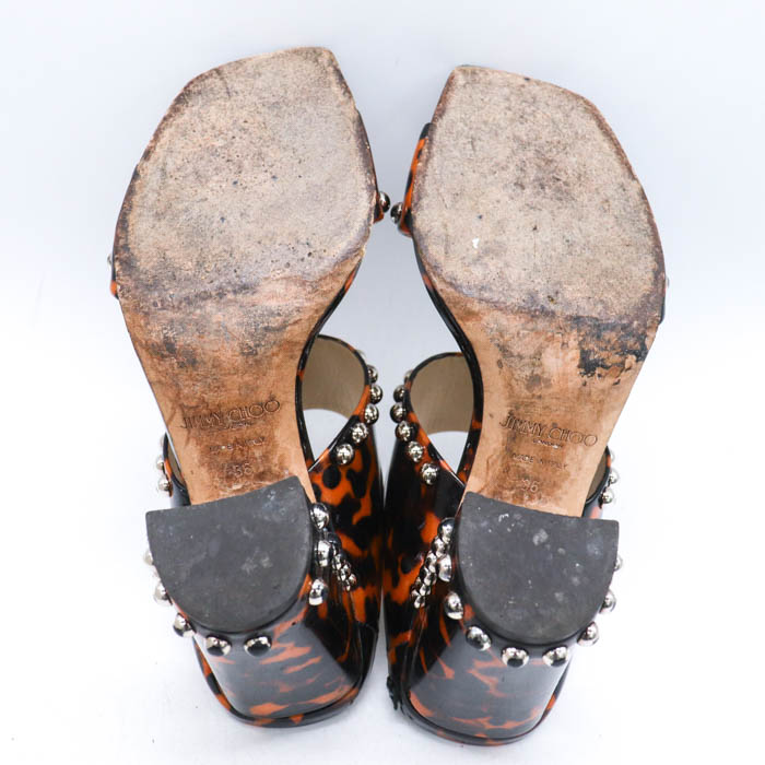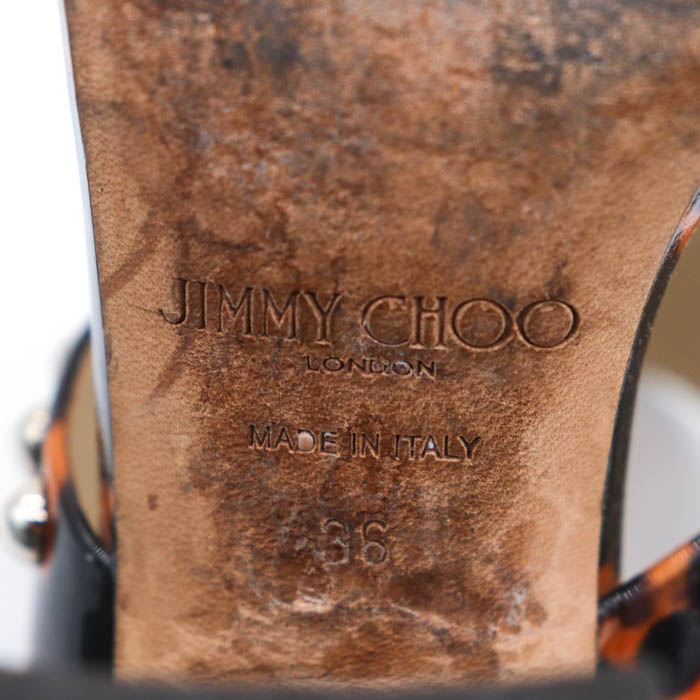 ジミーチュウ ミュール サンダル チャンキーヒール ブランド 靴 イタリア製 レディース 36サイズ ブラック×ブラウン JIMMY CHOO 【中古】