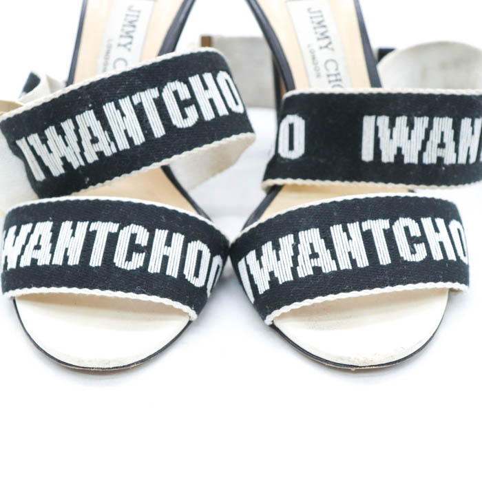 ジミーチュウ ミュール サンダル ハイヒール ブランド 靴 イタリア製 白 黒 レディース 36サイズ ブラッ...