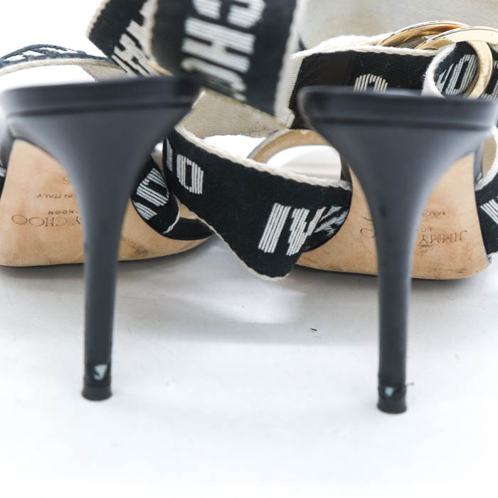 ジミーチュウ ミュール サンダル ハイヒール ブランド 靴 イタリア製 白 黒 レディース 36サイズ ブラック×ホワイト JIMMY CHOO 【中古】