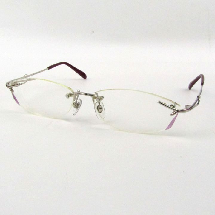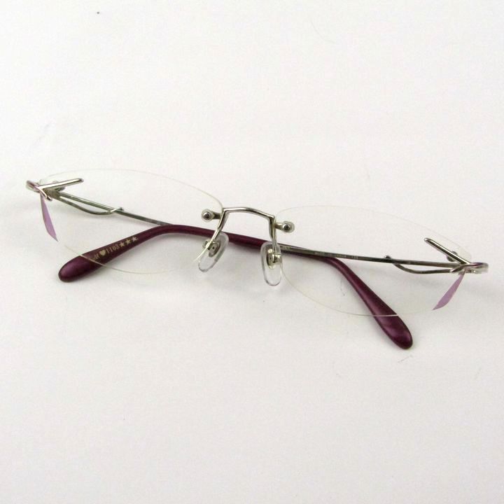 ホヤ メガネ 眼鏡 度有 リムレス 日本製 ブランド アイウェア レディース □16サイズ パープル系 HOYA 【中古】