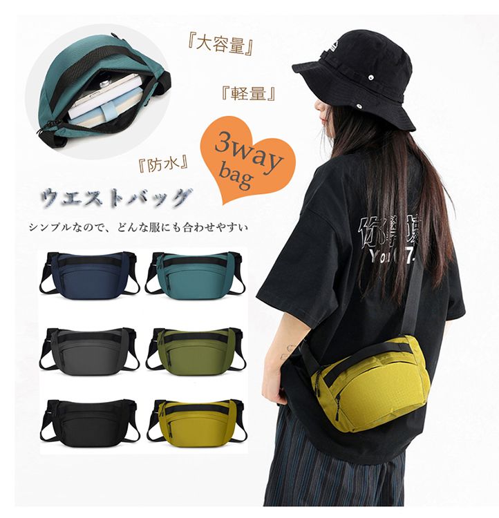 ユニセックスチェストバッグ ショルダーバッグ ウエストバッグ 肩掛け ウォーキング 軽量 スリム 大容量