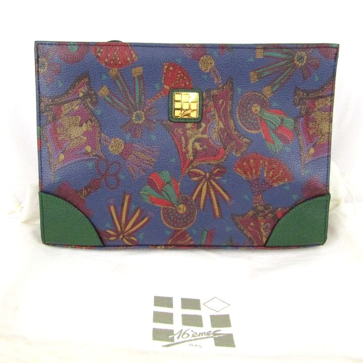 セイジエム クラッチバッグ セカンドバッグ ヴィンテージ ブランド 鞄 レディース ネイビー×グリーン 16eme 【中古】