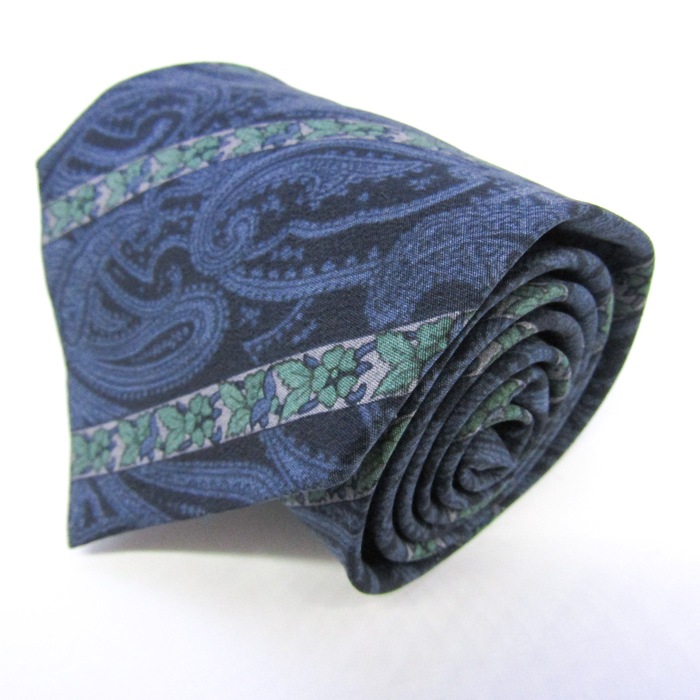カルヴェン ブランド ネクタイ シルク ペイズリー柄 ストライプ柄 ボタニカル柄 PO メンズ ネイビー CARVEN 【中古】
