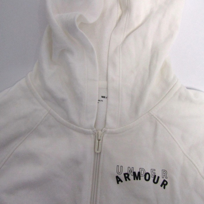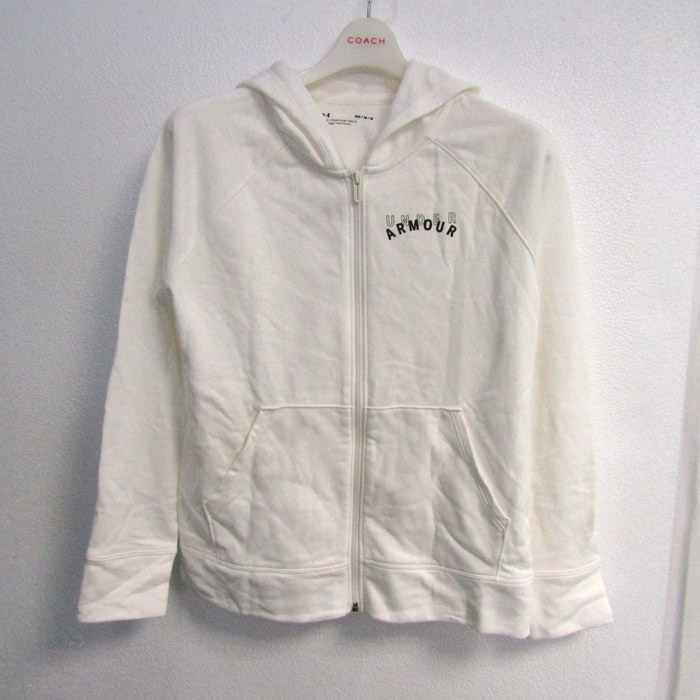 アンダーアーマー パーカー トップス ジップアップ スウェット スポーツウエア レディース MDサイズ ホワイト UNDER ARMOUR 【中古】