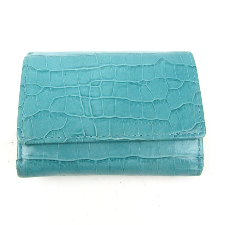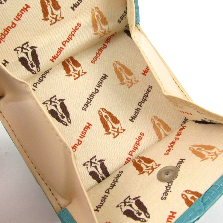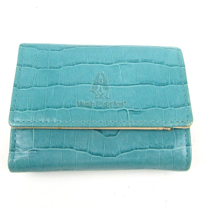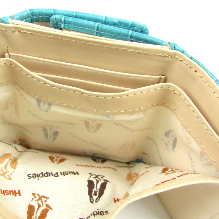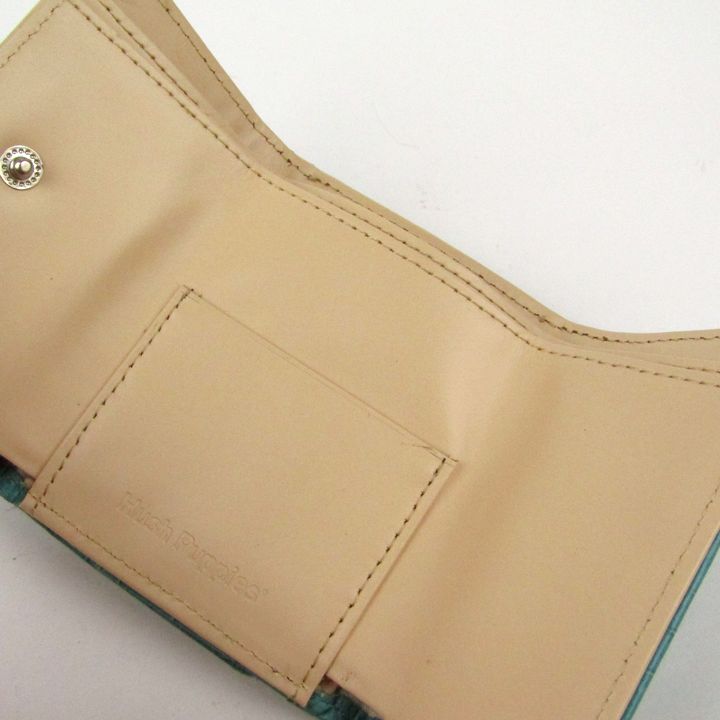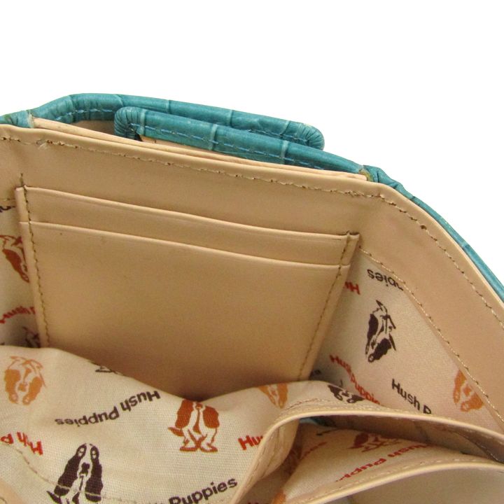 ハッシュパピー 三つ折り財布 クロコ型押し 小銭入れあり ミニ財布 ウォレット ブランド レディース グリーン Hush Puppies 【中古】