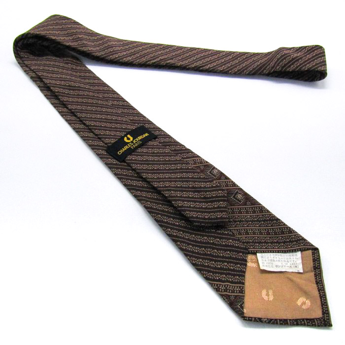 シャルル・ジョルダン ブランド ネクタイ シルク ストライプ柄 小紋柄 PO メンズ ブラウン CHARLES JOURDAN 【中古】