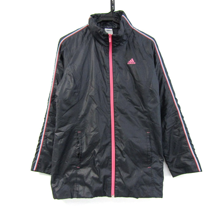 アディダス ナイロンジャケット ウィンドブレーカー スポーツウエア アウター レディース Lサイズ ネイビー系 adidas 【中古】