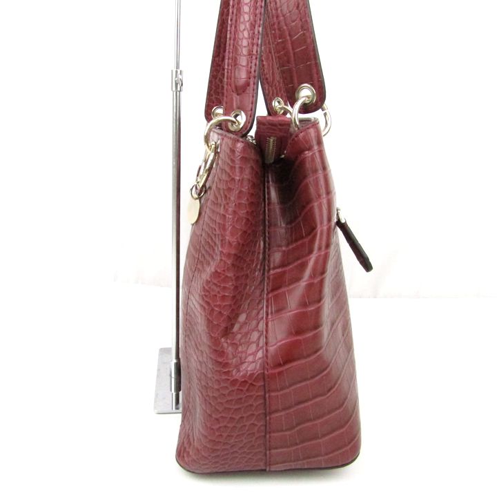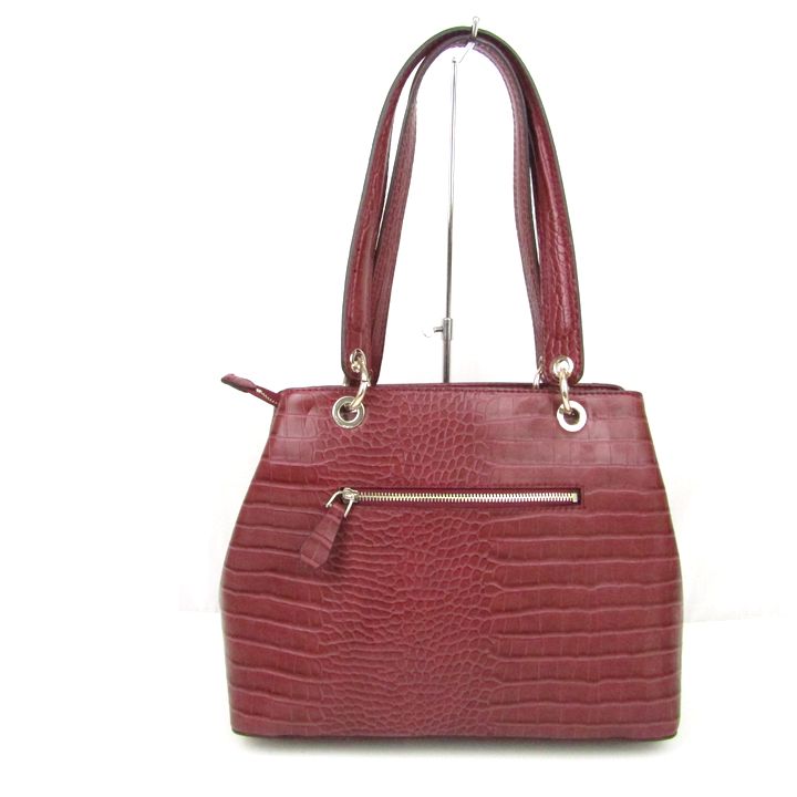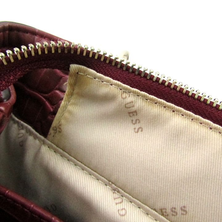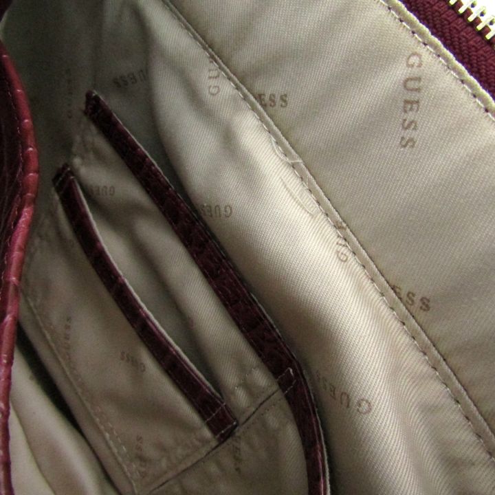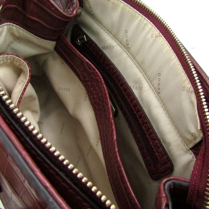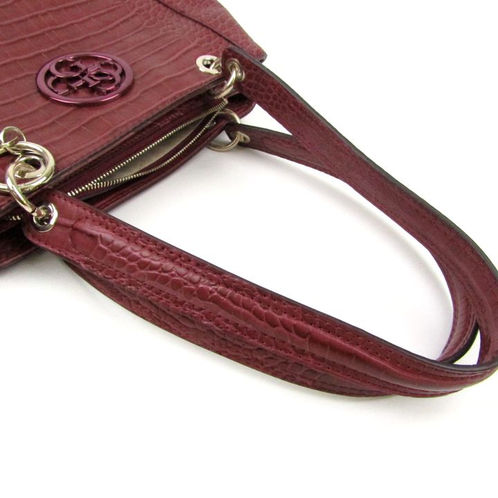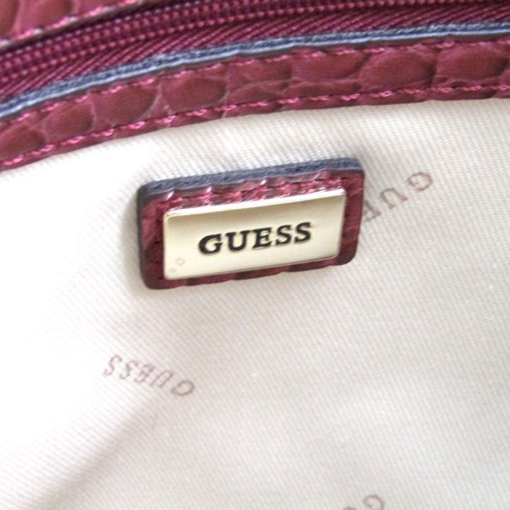 ゲス トートバッグ クロコ型押し レザー ショルダーバッグ 肩掛け 鞄 カバン ブランド レディース ボルドー Guess 【中古】
