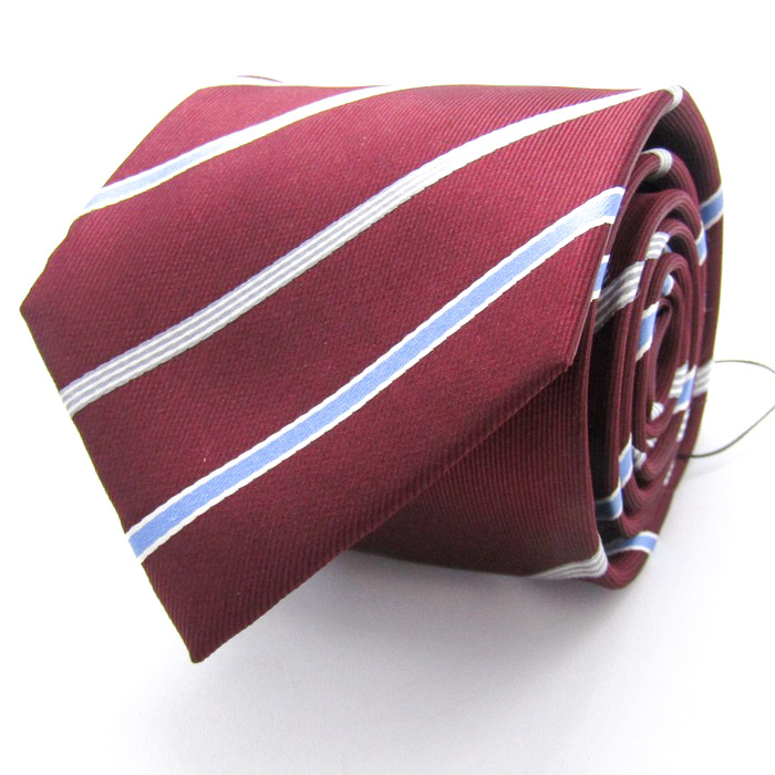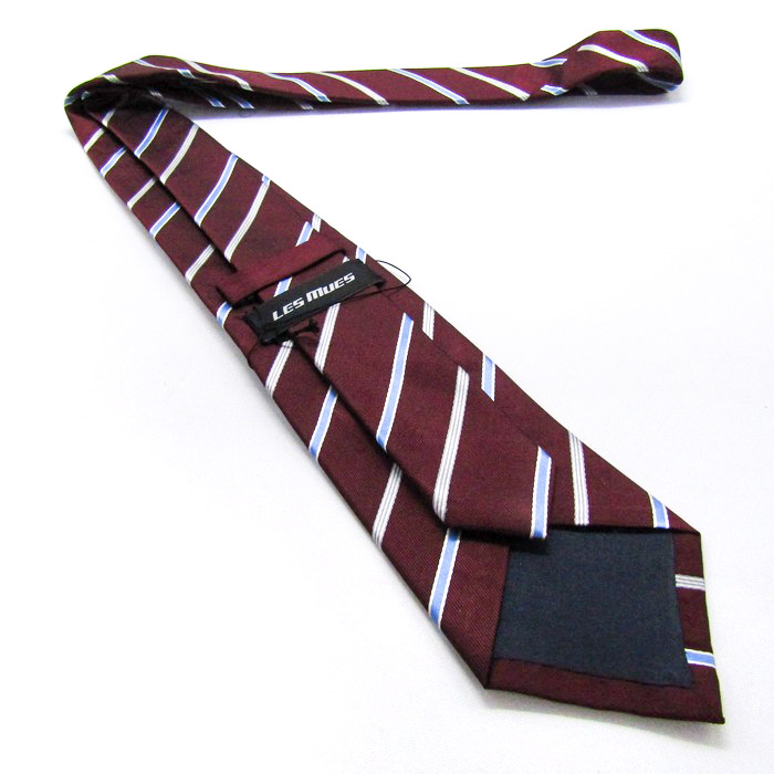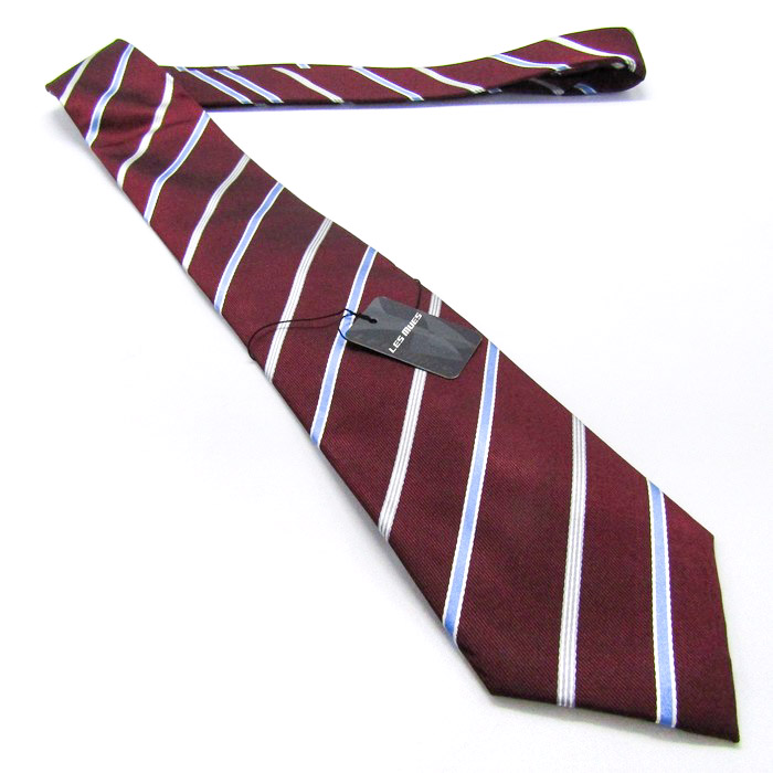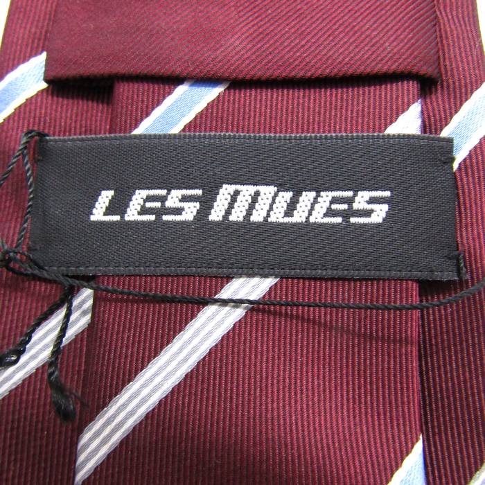 レミュー ブランド ネクタイ シルク ストライプ柄 未使用タグ付 PO メンズ レッド LES MUES 【中古】