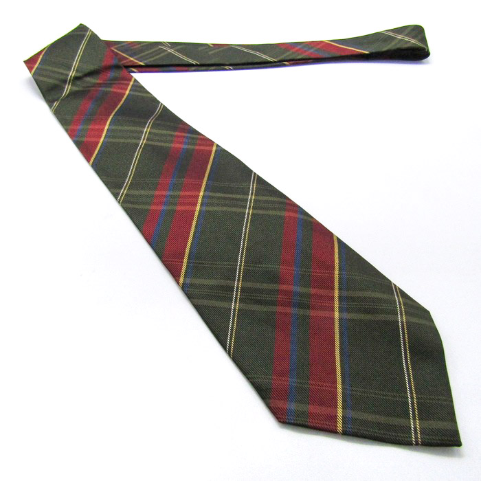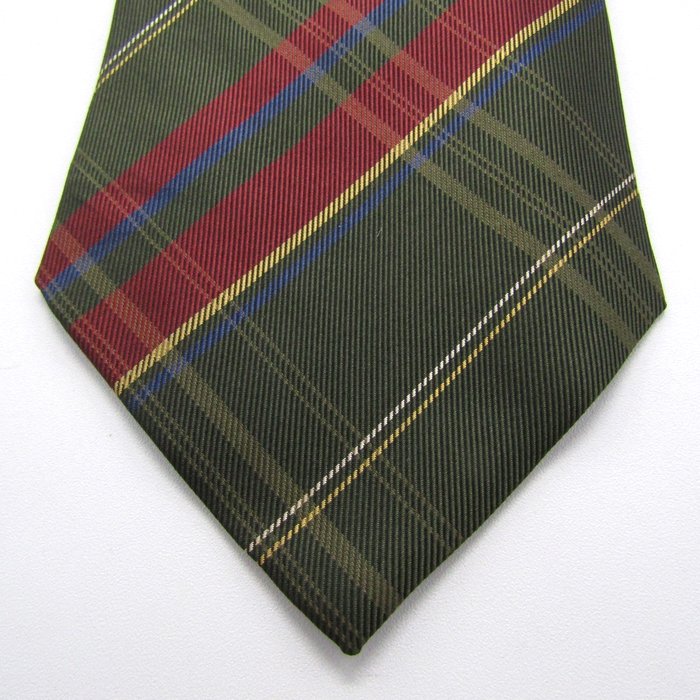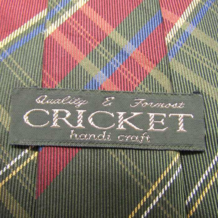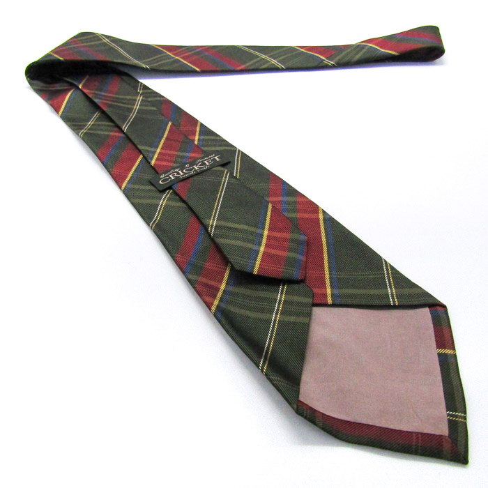 クリケット ブランド ネクタイ シルク ハンドメイド ワイドタイ チェック柄 格子柄 PO メンズ カーキ CRICKET 【中古】