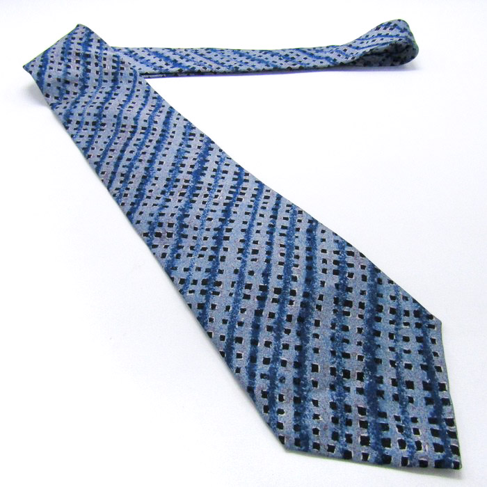ヒロココシノ ブランド ネクタイ シルク 小紋柄 ストライプ柄 総柄 ワイドタイ PO メンズ ブルー HIROKO KOSHINO 【中古】