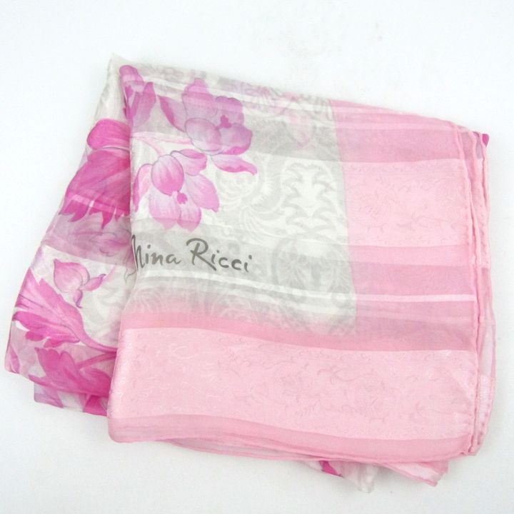 ニナリッチ スカーフ 花柄 ブランド 小物 レディース ホワイト×ピンク NINA RICCI 【中古】
