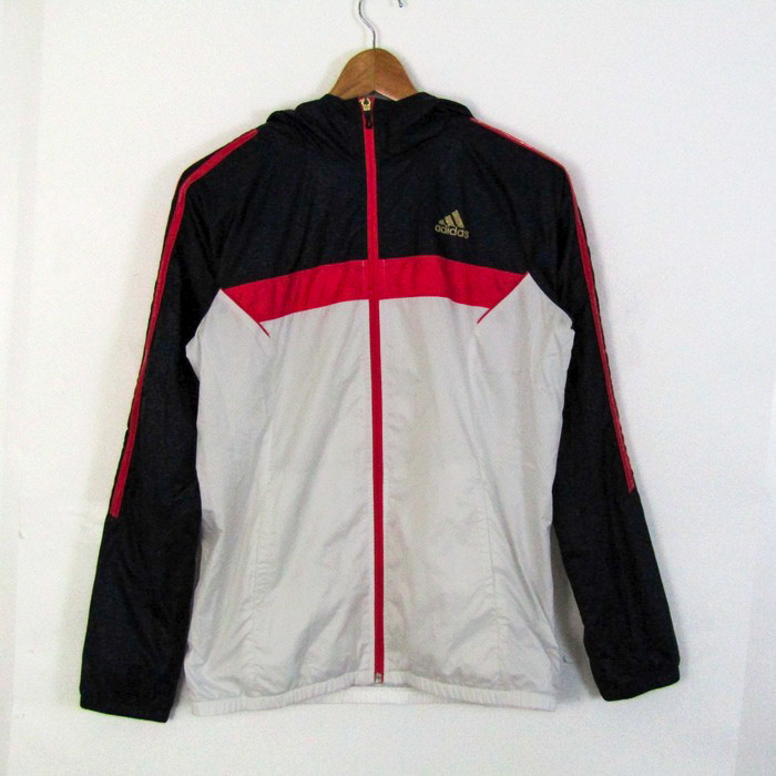 アディダス ジャージ ウィンドブレーカー スポーツウエア ジャケット アウター レディース OTサイズ ホワイト系/ネイビー系 adidas 【中古】